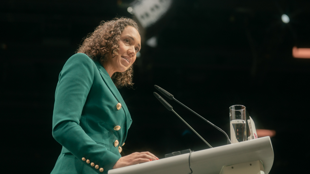 Genau deshalb will ich meinen Beitrag leisten, will Verantwortung übernehmen. Und genau deshalb kandidiere ich heute hier als Generalsekretärin dieser Partei. Also für die, die mich noch nicht kennen: Ich heiße Nicole Büttner. Ich komme aus Karlsruhe. Meine Mutter stammt aus Jamaika. Dass ich nach meinem Wirtschaftsstudium gestalten wollte, früh an großen Themen arbeiten wollte, das war für mich schon immer klar. Und für mich war sehr früh klar, dass das im Bereich der Technologie stattfinden würde. Schon früh war ich auf dem Thema Künstliche Intelligenz tätig, bevor vielen vielleicht klar war, dass diese Technologie alles umkrempeln könnte. Aber mich da durchzusetzen, das war mein großes Ziel.