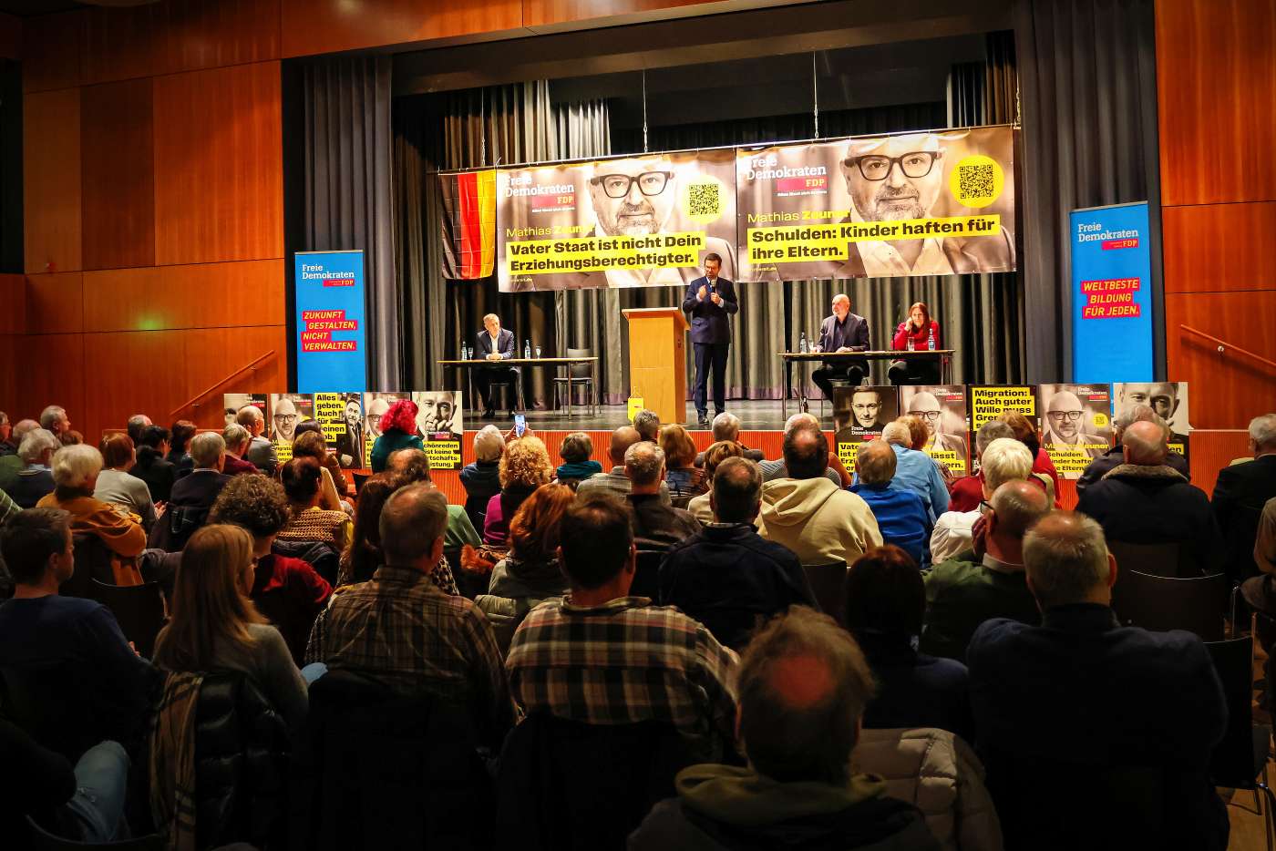 Am 22. Januar war der designierte Generalsekretär der FDP, Dr. Marco Buschmann, zu Gast in der Groß-Umstädter Stadthalle. Vor 150 interessierten Bürgern sprach der ehemalige Bundesjustizminister über liberale Wirtschaftspolitik, die aktuelle Lage in Deutschland und über die kommende Wahl. Er machte klar deutlich, dass Deutschland nur mit einem wirtschaftlichen Wachstum wieder in Fahrt kommt und so unser aller Wohlstand erhalten wird. Ein „Weiter so“ bringe diesen schneller in Gefahr, als sich das Mancher vorstellen vermag. Um den Gästen auf verständliche Art den Unterschied der beiden Wirtschaftsmodelle zu verdeutlichen, erklärte er: „Die 4 S der linken Wirtschaftspolitik sind mehr Staatsausgaben, mehr Subventionen, mehr Steuern und mehr Schulden. Das hat noch nie funktioniert und ist keine Wirtschaftspolitik!“ Danach beantwortete er noch zusammen mit dem hessischen FDP-Generalsekretär Moritz Promny und dem FDP BTW-Kandidaten Mathias Zeuner die Fragen der Gäste.